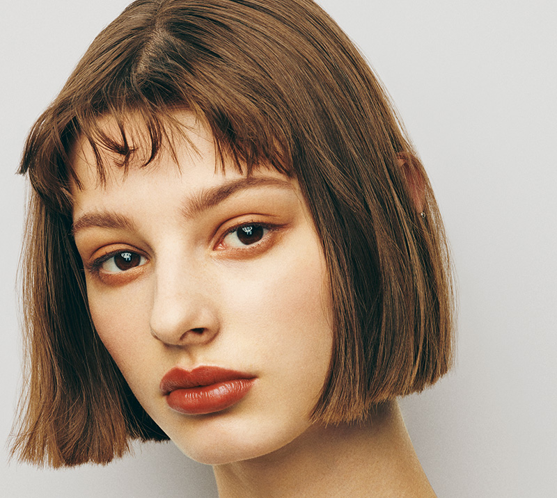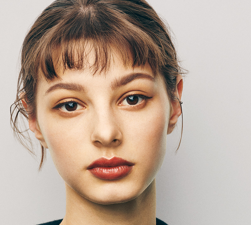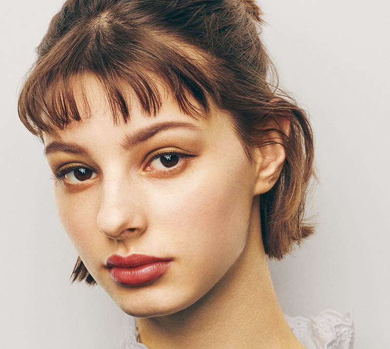 眼線只重點描繪在眼珠的上下唇色則是挑選巧克力的棕色俏皮且帶有自然感的風格