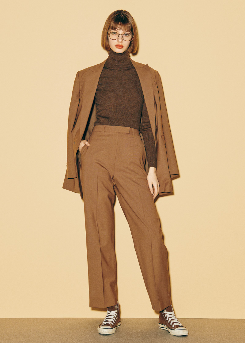 根據上下半身不同的衣服質地 搭配出些微差別眼線只畫在眼尾的地方唇彩則是選擇米棕色