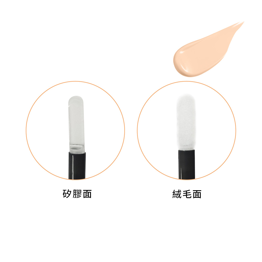 眼下黑眼圈、痘疤瑕疵好困擾?撇開厚重遮瑕感、展現零瑕疵眼周!「艾杜紗一手遮瑕修飾液」輕輕點推馬上就像融入肌膚一樣的服貼,瑕疵、黑眼圈和膚色不均通通一手遮蓋!特殊雙材質的刷頭設計,不論大面積或細微處都能完美無瑕。矽膠面:薄透均勻塗抹在需較大面積的瑕疵部位;絨毛面: 針對眼下黑眼圈、鼻翼等需較細緻的地方。艾杜紗一手遮瑕液運用珠光粉末、粉色校正粉末與扁平粉末,有效遮去暗沉的下眼周,且可以長時間維持像剛完妝般的效果;搭配天然萃取保濕成分洋甘菊、迷迭香,還能保濕呵護眼周肌膚,不容易卡紋、浮粉。